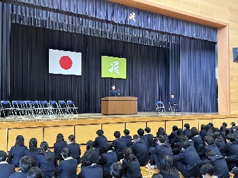 全校生徒(1年生を除く)で校歌を斉唱し、令和6年度の始まりを告げました。