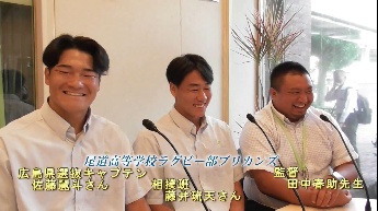 選抜チームでもキャプテンを務める佐藤麗斗と、相撲少年の部 広島県選抜に選ばれた2名の中から、ラグビー部相撲班の藤井琉天(ふじい るきあ)、そして田中監督が出演しお話しました。